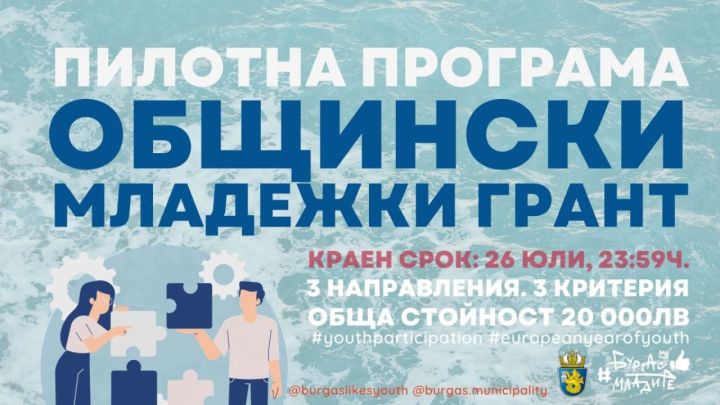 Община Бургас стартира програма за финансиране на младежки инициативи – „Общински младежки грант“, Тя е част от инициативите по повод Европейската година на младежта – 2022 и цели подкрепата на проекти на неформални младежки групи и граждански организации, които искат да помагат за развитието на младежката екосистема в Бургас.