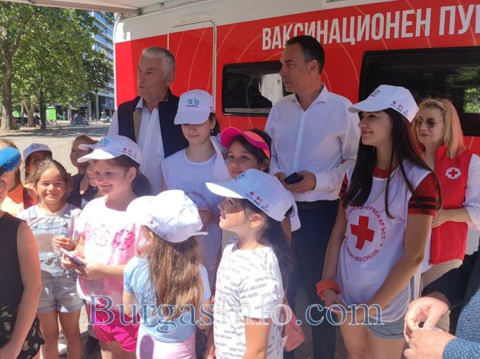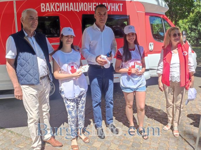 Мобилни ваксинационни екипи са разположени в Морската градина в Бургас, в района на Пантеона. Днес в 11:30 ч. те започнаха да имунизират безплатно всички желаещи. Реализирането на това събитие е поредната стъпка, която Българският Червен кръст предприема в посока разширение на ваксинационния обхват в България и предоставяне на необходима и достоверна информация на общностите.
