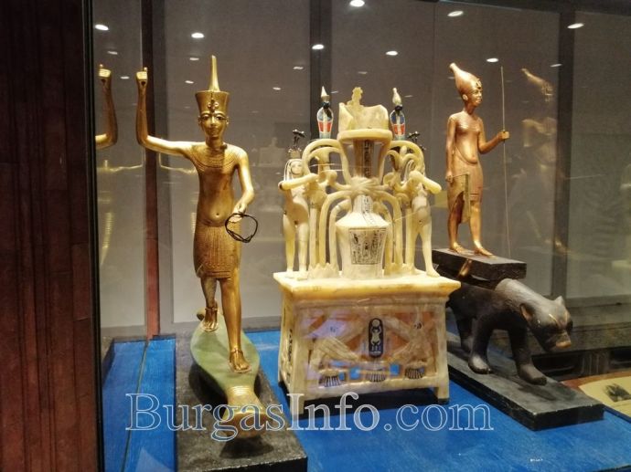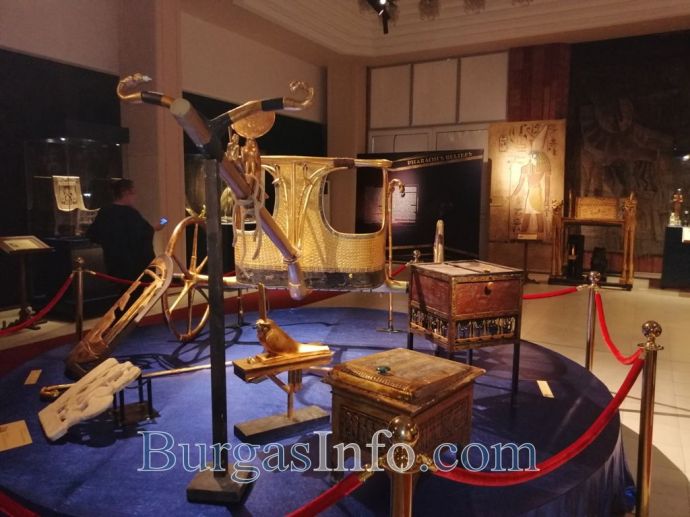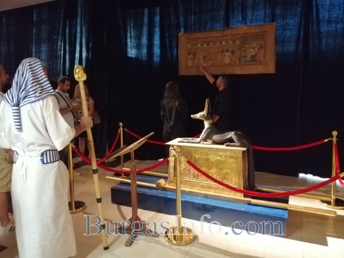Богатата културна програма на община Бургас води в морския град дори фараоните или по-точно прецизни копия на техните мумии и съкровища, съпътстващи ги във вечността. Те са представени в мащабната изложба „Мощта на символите”, подредена във фоайето на Операта, с която организаторът „Хорус България” отбелязва век от откриването на гробницата на Тутанкамон от археолога Хауърд Картър.