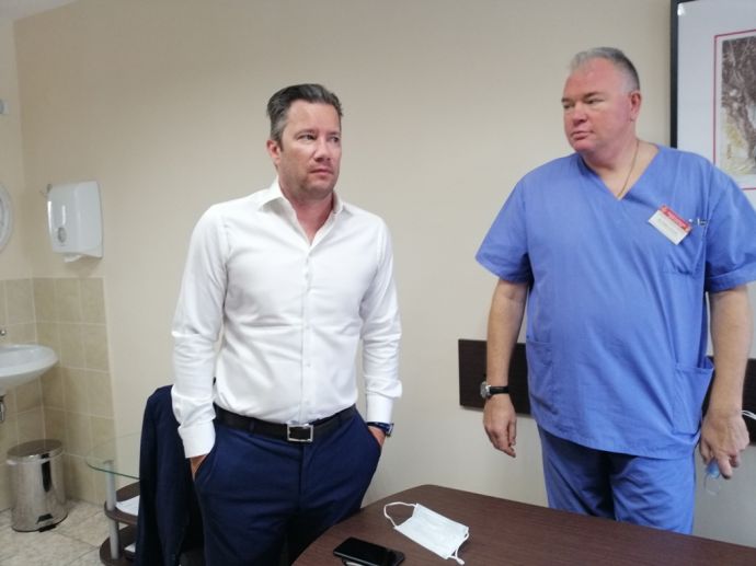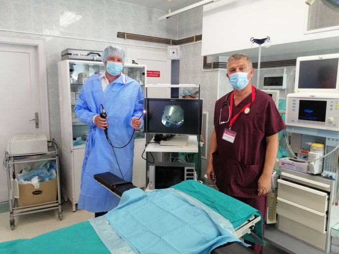Управителят на КОЦ-Бургас отправи искрена благодарност към Дъглас Алан Гилбърт - CIO and Chief Digital officer, Sutherland Global Services. Преди няколко месеца компанията е дарила средства, чрез които е закупен един от най-модерните видеобронхоскопи, апарат с изключително голямо значение при диагностика на белодробни карциноми и усложнения от COVID -19, като пневмония. Видеобронхоскопът прониква през трахеята и бронхите в самата белодробна тъкан. С него може да се види от какво естество е процесът в белия дроб - пневмония или карцином, и да се взема част от тъканта за хистологично изследване, за да се определи лечението.