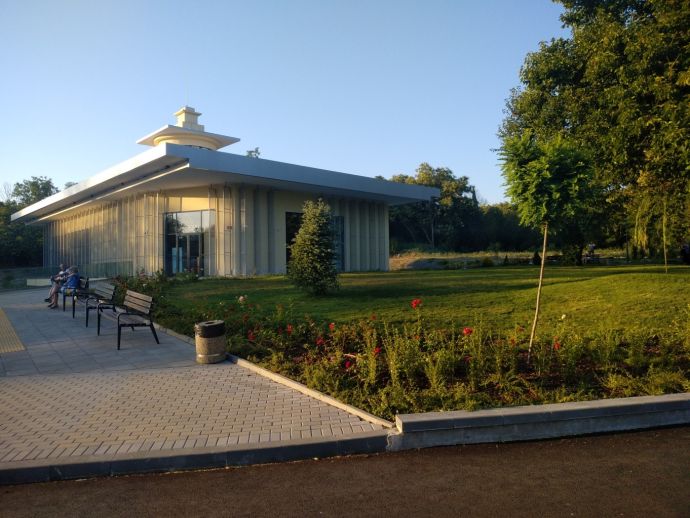 Междувременно Общината сътвори около сградата нов малък парк. Там е монтирано осветление. Поставени са пейки и кошчета за отпадъци. Изградени са тротоари. Няколкото стари красиви черници са запазени. Внесени са много млади фиданки, сред които маслини и кипариси. Засадени са декоративни храсти, цветя, теренът е затревен.