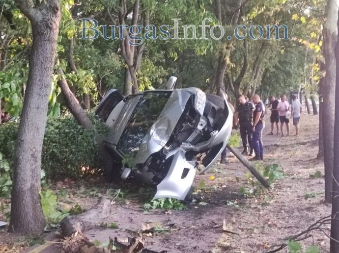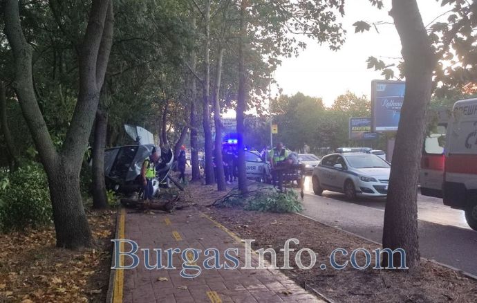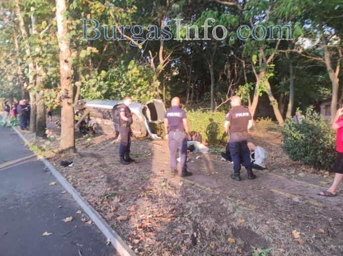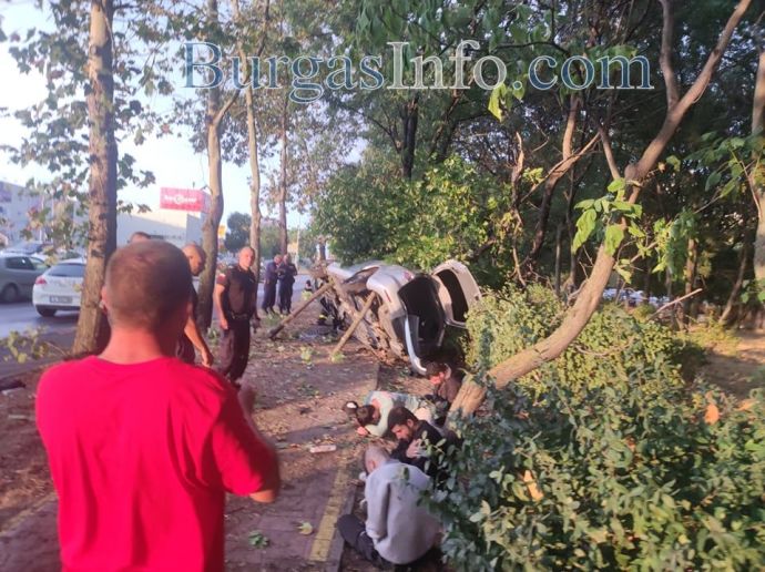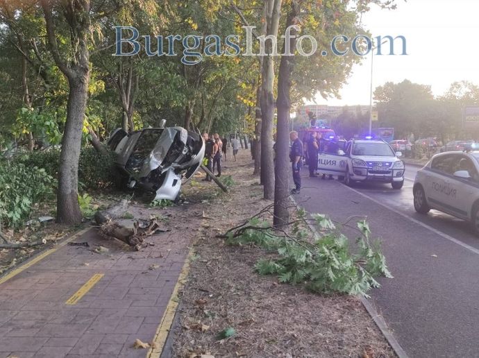 Лека кола „Мазда 6” с кърджалийска регистрация излетя от пътя и се заби в дърво на възловия бул. „Транспортна” в Бургас. Инцидентът е станал точно срещу мол „Бургас Плаза”, в посока към кръговото за Варна. На тревата в момента от колата са изведени 4-ма млади мъже – нелегални мигранти. Има още толкова, откарани в болница, като единият е в тежко състояние. На място е екип на пожарната, както и 3 полицейски автомобила. Пожарникарите помагат за отварянето на автомобила, като режат дърветата. Огледът продължава.