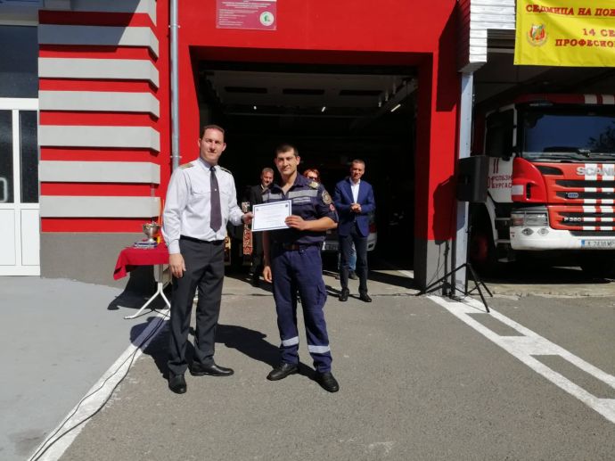По повод празника се проведе тържествен водосвет за здраве на бургаските огнеборци, награждаване на отличените служители от РДПБЗН – Бургас, както и най-добрите в конкурса за детска рисунка „С очите си видях бедата”. На церемонията присъстваха областният управител Мария Нейкова, кметът Димитър Николов, директорът на ОДМВР старши комисар Калоян Калоянов.