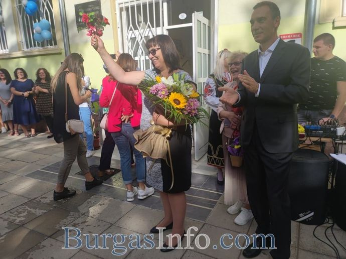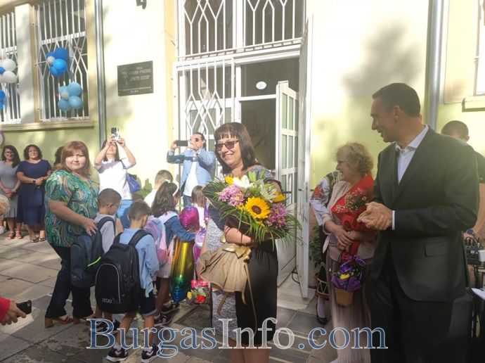 „Тук има изключително активно родителско тяло. Благодарение на техните усилия, благодарение на усилията на директор Велева, беше подготвен прекрасен проект за нов корпус, който включва физкултурен салон с всички необходими класни стаи, за да може училището да придобие капацитет, който да отговаря за нуждите на квартала. И за това днес съм тук като кмет да заявя своята ангажираност, моята и на община Бургас. В момента тече обществената поръчка за избор на изпълнител. До 20 септември е срокът, в който строителните фирми могат да подават своите оферти. Дори да не намерим подкрепа от държавата, аз мисля, че с усилията и със средствата на община Бургас ще успеем да се справим да изградим един прекрасен нов корпус, заедно със спортна площадка, за да можем да отговорим на всички нужди на учебния процес в кв. Сарафово”, каза Николов. Той пожела на децата успех, а на родителите да подкрепят децата си, защото са прекрасни.