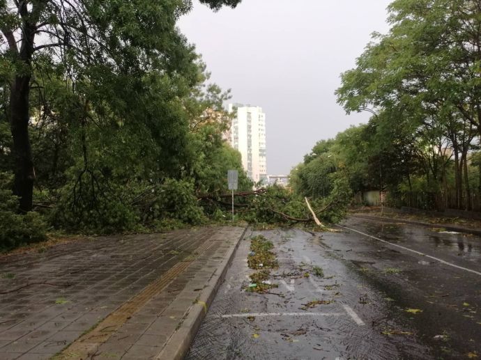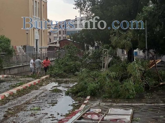 Ураган с гръмотевици връхлетя Бургас преди минути. Вятърът и дъждът буквално за минута превзеха града. Хвърчат клони, ламарини. "Направо е страшно. Не можем да сварим да затваряме прозориците, всичко от терасата замина навън", коментираха бургазлии. Паднали клони има из целия град - върху пейки, коли, улици...