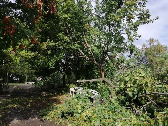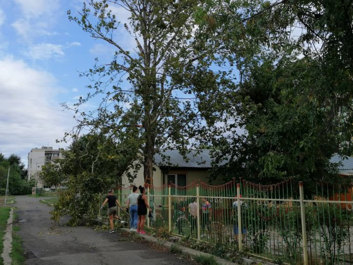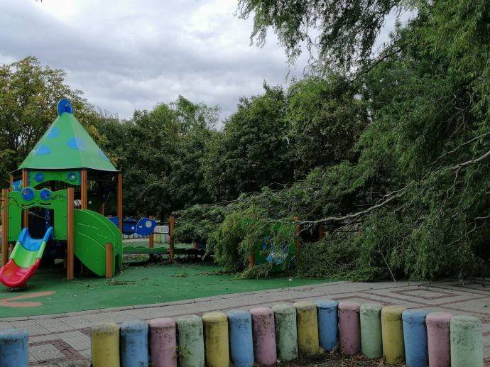 Днес например паркът в ж.к. „Изгрев“ изглежда различен. Дървета са паднали върху пейките, върху детските кътове, лампите на скейтпаркът са изкривени.