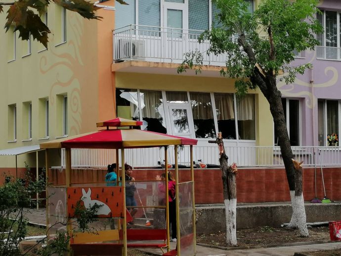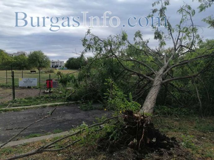 Бургас продължава да се отърсва от щетите, които нанесе бурята, връхлетяла морския град вчера. Изкоренени и разцепени дървета, счупени и избити стълбове за улично осветление, изкъртени пътни знаци, множество клони и ламарини затрупаха улици, паркове, дворове на детски градини. Из целия град се чува шум от резачки.