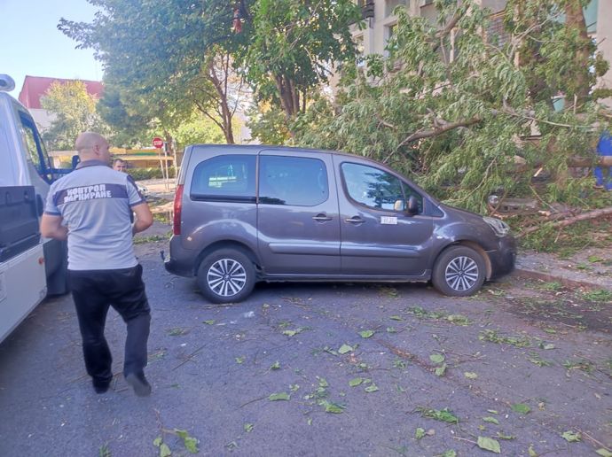 Много съборени дървета има в градинката и по алеята край блок 41. Намиращите се там павилиончета за дрехи днес останаха затворени, тъй като повалените растения са ги блокирали.
