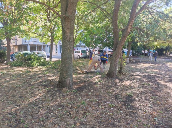 Бургас продължава да се отърсва от капана на падналите от урагана дървета и днес. Екипи на Пожарната и Общината са из целия град, помагат им много доброволци. Сред най-пострадалите са парковете в ж.к. „Славейков“ и ж.к. „Изгрев“. Паркът в „Славейков“ тази сутрин се върна към обичайния си вид, следват „Света Троица“ и „Изгрев“. Жителите на 42 блок в „Славейков“ вече имат достъп до жилищата си във вход 1.