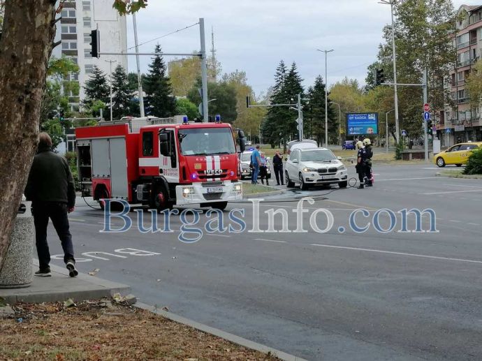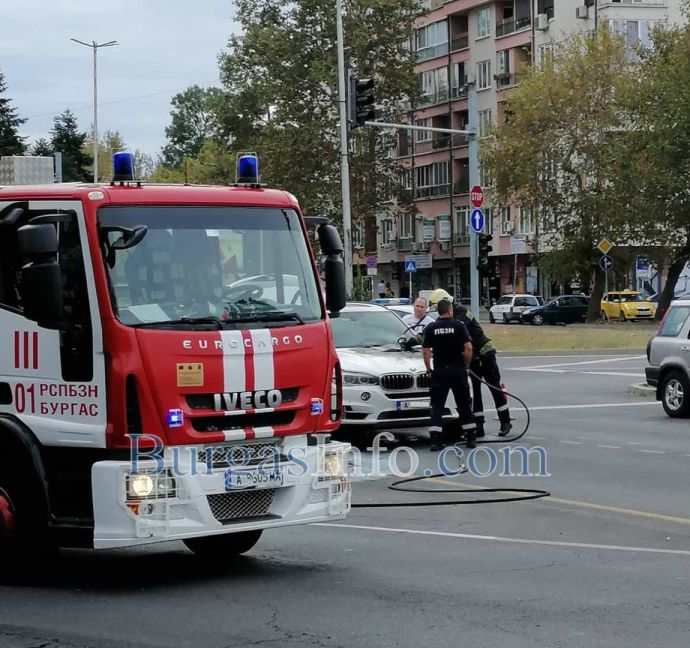 Автомобил БМВ запуши на светофара на бул. "Стефан Стамоболов", в района на хотел "Аква" в Бургас. На място са екипи на полицията и Пожарната. Проблемът е под капака на колата. Няма насенени сериозни материални щети по бялото возило.