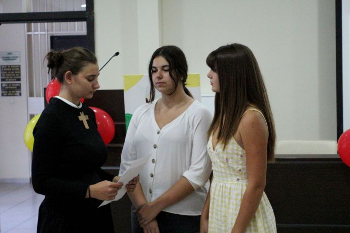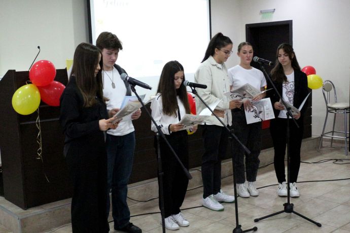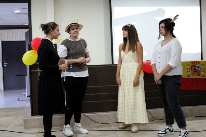 На “фиестата” вчера присъстваха директорът на гимназия ПГРЕ Г.С.Раковски Радостина Георгиева и официални гости от РУО Бургас, старши инспектор по чужд и майчин език Жанета Димитрова, старши инспектор по организациия на образованието Валентина Камалиева и Цветелина Атанасова, отдел човешки ресурси учениците от 11 клас представиха пред осмокласниците и техните преподаватели Десислава Бинкова и Теодора Боянова малка част от Дон Кихот.