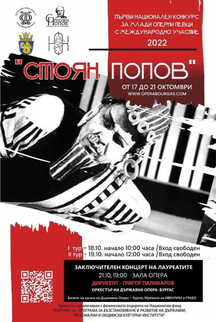 Първият Национален конкурс за млади оперни певци “Стоян Попов“ ще се проведе от 17 до 21 октомври 2022 г. в залата на Държавна опера – Бургас. Конкурсът се осъществява със съдействието на Община Бургас. Проектът, спечелен от Бургаската опера, е реализиран с финансовата подкрепа на Национален фонд "Култура" по "Програма за възстановяване и развитие на държавни, регионални и общински културни институти“. Патрон на конкурса е големият български баритон, който е пял с дългогодишен успех по наши и световни сцени – Стоян Попов. Освен на сцената, маестро Попов е посветил повече от 20 години и на каузата да помага на млади колеги, учейки ги на вокална техника и интерпретация, а чрез контактите и познанствата си у нас и в чужбина, той е успял да помогне и за професионалната им реализация. Негова неосъществена мечта остана създаването на студия за млади оперни певци, където те да развиват и усъвършенстват таланта и вокалните си и актьорски умения. „Идеята за конкурс на негово име произлиза именно от това му съкровено желание – с мисъл и грижа към младото поколение, което да продължи достойното присъствие на български оперни артисти по световните сцени.“, казва доц. Александър Текелиев, който е бил негов ученик и е инициатор на създаването на конкурс на името на Стоян Попов.