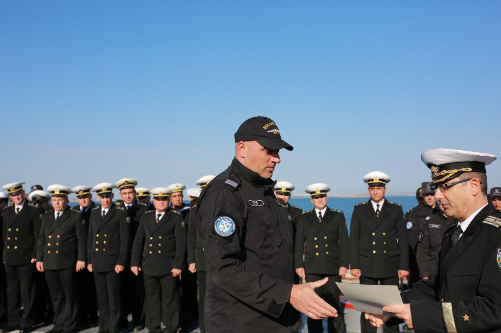 По повод празника грамоти от името на командира на флотилията и командира на дивизиона вяха връчени на отличилите се със своите качества и професионализъм военнослужещи. Капитан II Стоян Христов връчи почетни плакети на моряците от първия екипаж на кораба, които са го приели от ВМС на Кралство Белгия и са го пребазирали от военноморска база Зеебрюге до вмб Бургас и все още служат на фрегата „Дръзки“.![]()