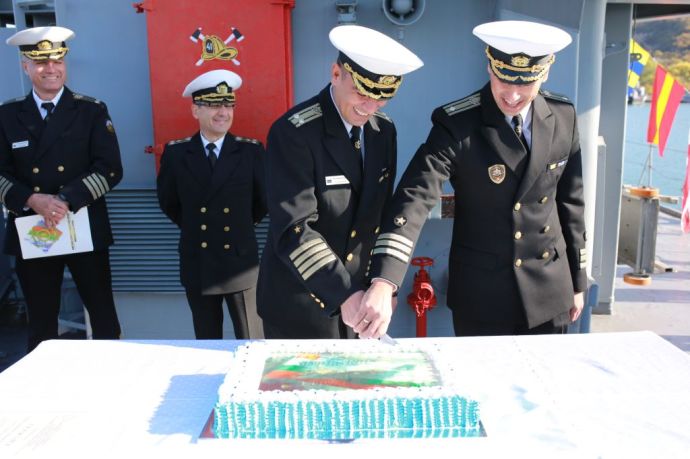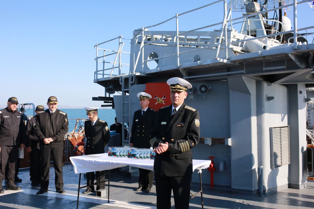 Началникът на щаба на флотилия бойни и спомагателни кораби капитан I ранг Павлин Петков поздрави командира на кораба и екипажа и им благодари за ежедневните усилия и високия професионализъм, проявен при изпълнение на всички поставени през годината задачи. Той пожела на всички здраве, семейна топлота, щастие и нови професионални успехи при изпълнение на отговорностите и ангажиментите за гарантиране на морският суверенитет на Република България.