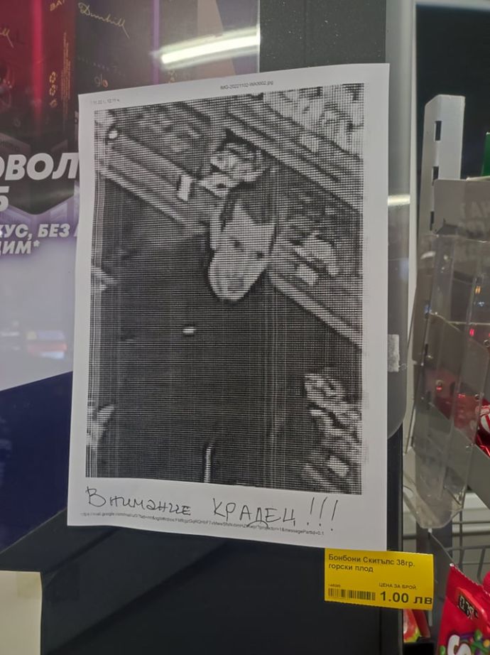 Два от големите магазини за хранителни стоки в бургаския ж.к. „Славейков“ издирват крадци, които в рамките на няколко дни са шетали в тях. Единият супермаркет е „Buongiorno“, а другият – „Болеро“. В първия крадец е отмъкнал алкохол, а снимката му в момента е залепена на няколко места в търговския обект с цел да бъде разпознат. „Поне да дойде да си плати сметката, да не му я плащаме ние“, коментира служителка в магазина.