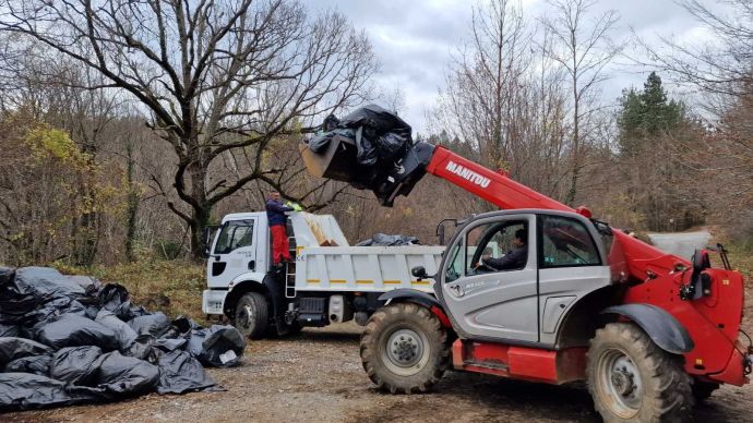 Над 30 тона битови отпадъци от преминаващите мигранти, разпръснати в труднодостъпни места в гората, вероятно в близост до техни маршрути за преминаване, бяха почистени днес при акция в сърцето на Странджа.