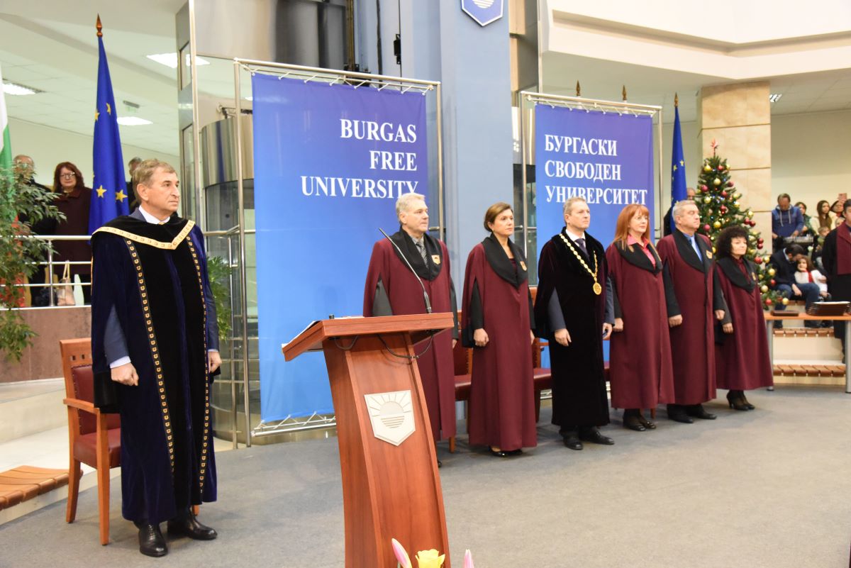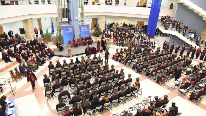 Над 300 абсолвенти от 18 бакалавърски специалности и 20 магистърски програми получиха своите дипломи за висше образование. Свидетелства за отличие и доказан стремеж за издигане авторитета на академичната общност бяха връчени на изявените абсолвенти.
