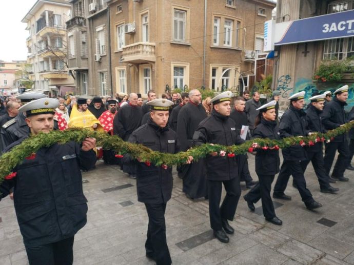 Литийното шествие премина по ул. „Богориди“ от площад „Атанас Сиреков“ към Моста преди броени минути. То завърши с хвърляне на венци и цветя в морето в памет на загиналите моряци и рибари. На Моста ле отслужена и заупокойна молитва.