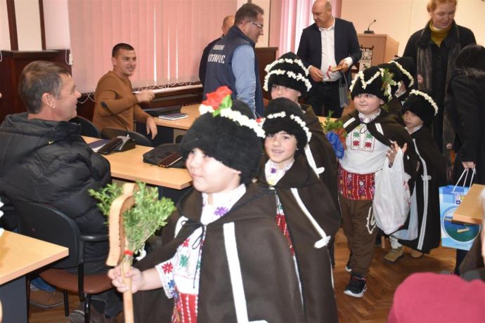Като добро знамение за новата година, точно на Игнажден, първи в сградата на Общината пристигнаха големите коледари от СУ „Иван Вазов“ – Поморие. Именно те дадоха начало на последното за тази година заседание на Общински съвет – Поморие. Всички прекрасни дружини и техните старателни ръководители получиха подаръци от кмета. На малките момчета той пожела безгрижно детство и много изненади от Дядо Коледа, а на младежите – успех на предстоящите изпити, за да се равиват и успяват все така – с лекота и усмивка.