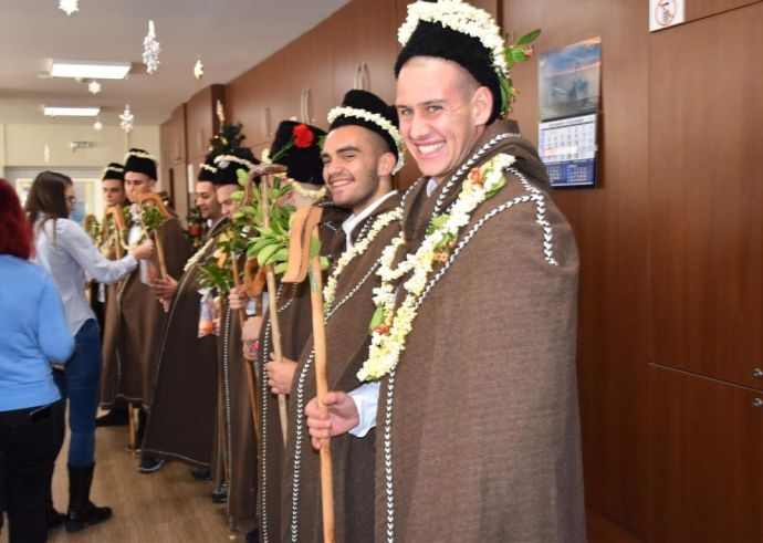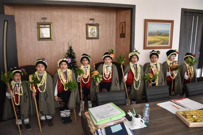 Така наричаха десетките малки и големи коледари, които гостуваха в Община Поморие през тази седмица. Кметът Иван Алексиев, председателят на Общински съвет Адам Адамов и заместник-кметът Янчо Илиев посрещнаха усмихнати дружини от ДГ „Детелина“ – Поморие, ДГ „Веселушко“ – Поморие, ДГ „Детски свят“ – Гълъбец и ДГ „Теменуга“ – Ахелой. Част от децата се изявиха и пред кметовете на кметства, а друга част – пред администрацията.