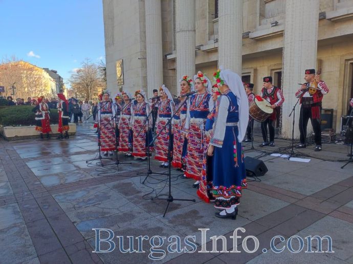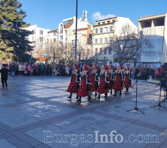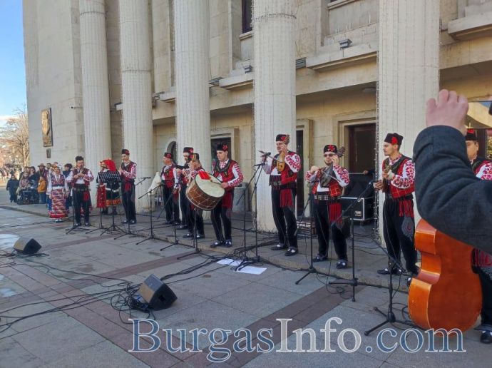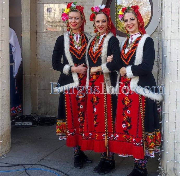 Ансамбъл „Странджа” поздрави за Коледа бургазлии и гостите на града на площад „Атанас Сиреков” пред сградата на Общината. Хубавото време и техните изпълнения допълнително създадоха празнично настроение у публиката.