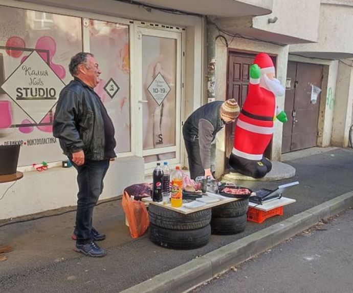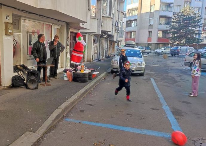Съседи на станалата известна като най-веселата ул. „Елин Пелин“ в бургаския ж.к. „Възраждане“ изкараха масите на улицата, за да отпразнуват заедно Коледа днес. Поради тази причина този участък е затворен за движение на автомобили. Докато родителите подготвят трапезите, децата играят и очакват да ги посети Дядо Коледа. Не липсва нищо на масата от традиционните ястия, с пълна пара работи и скарата. Настроението, разбира се, е празнично.