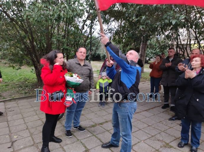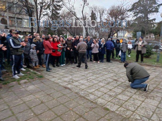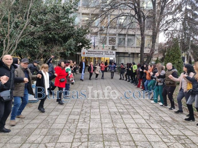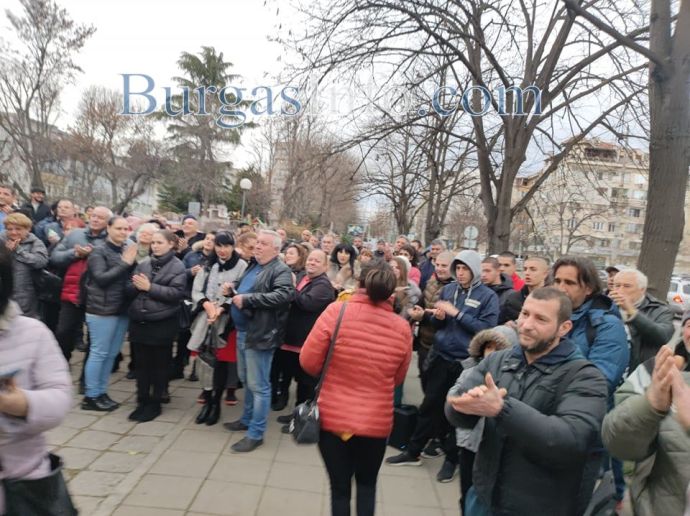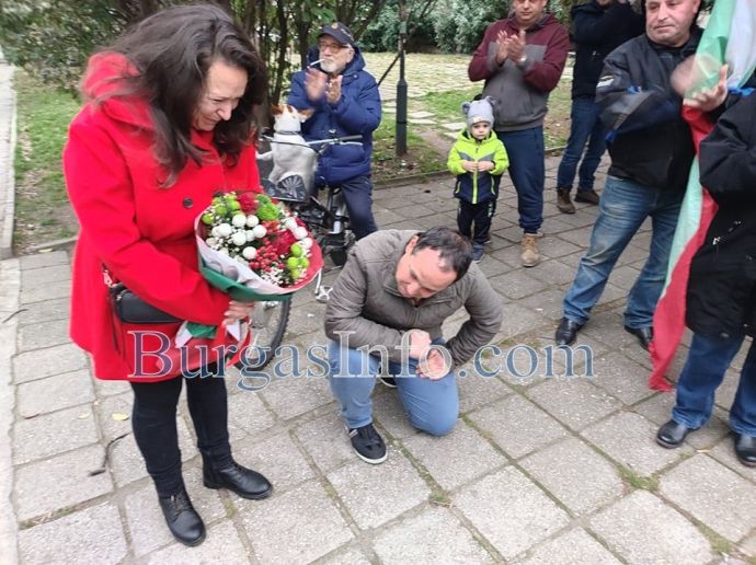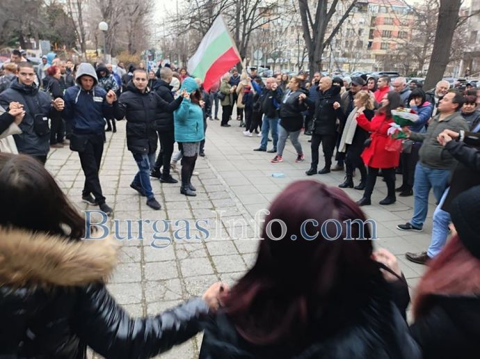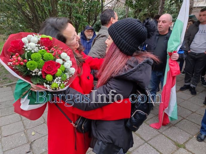 Предприемчивото семейство от странджанското село Индже войвода Димитър Станчев и Ралица Кунева бяха посрещнати с аплодисменти пред сградата на ОД на МВР в Бургас. Техни приятели и съмишленици организираха днес протест, тъй като в това сдание се намира и подразделението на ДАНС в морския град.