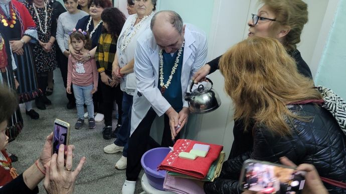 На 21 януари отбелязваме третия пореден празник в началото на годината, чиито обичаи са свързани с водата. И докато на Йордановден мъжете скачат във водите за ритуалното спасяване на кръста, а на Ивановден къпят имениците за здраве, то традицията днес повелява да се измиват ръцете на хората, благословени с умението да помагат при раждането на нов живот – майки, баби, акушери и гинеколози. В Акушеро-гинекологичното отделение на МБАЛ – Поморие традицията бе спазена. Завеждащият отделението д-р Матей Попов отсъстваше, но останалата част от прекрасния екип: д-р Илиев, д-р Славейков, д-р Гечевска, акушерки и медицински сестри измиха символично ръцете си, пожелавайки си да израждат още много здрави бебета с лекота.