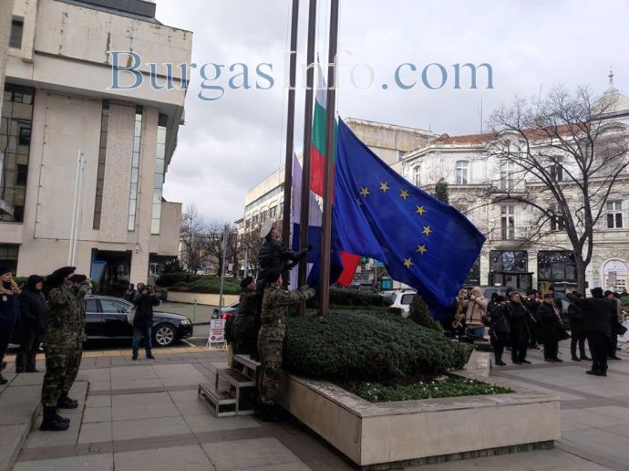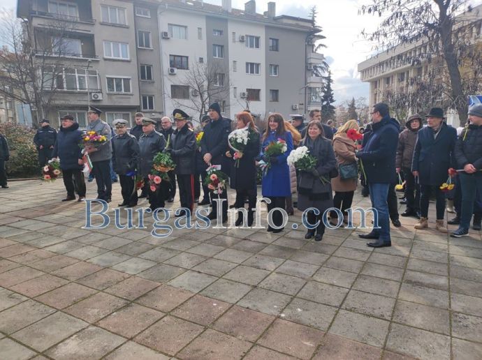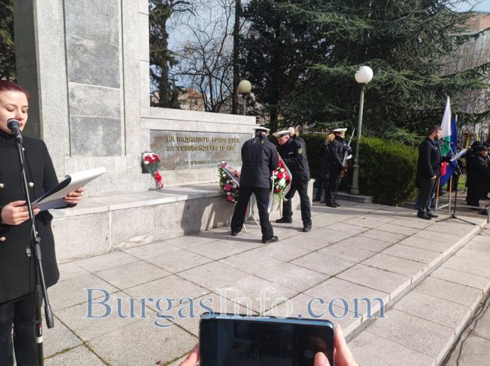 Бургас отбелязва днес 145 години от освобождението си. Тържественото честване започна с ритуала по издигане на националния трибагреник на площад „Атанас Сиреков”. На церемонията присъстваха кметът Димитър Николов, областният управител Мария Нейкова, председателят на Общинския съвет Севдалина Турманова, директорът на ОДМВР-Бургас старши комисар Калоян Калоянов, зам.-кметове, депутати и общински съветници от различни политически сили, представители на администрацията, обществени организации и граждани. По-късно бяха положени венци и цветя пред Руския паметник.