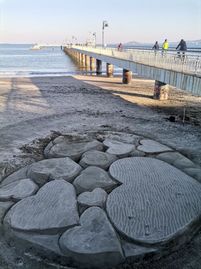 Сърца от пясък посрещат бургазлии и гостите на града на плажа край Моста. Те са поредната творба на атрактивните пясъчни автори Пол и Реми.