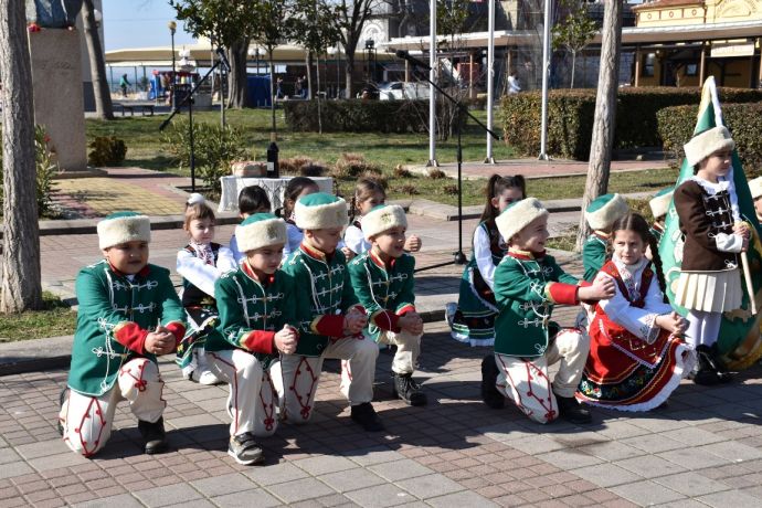Възпитаниците на група „Делфинче“ в Детска градина „Детелина“ – Поморие с учители г-жа Сотирова и г-жа Рибова също изразиха своята почит и благодарност към Левски. Облечени като четници, с песен и слово децата впечатлиха всички присъстващи с изявата си. Впечатляващи бяха и ученическите есета, участници в десетия литературен конкурс на ЦПЛР ОДК – Поморие, организиран в памет на Апостола. В рамките на церемонията днес директорът на комплекса Анета Данаилова и заместник – кметът на община Поморие Янчо Илиев връчиха награди на отличените от Поморие деца.