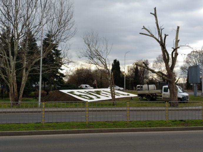 Община Бургас възложи да бъде изпълнен от живи растения за зеления цвят, а фонът е от бяла мозайка.