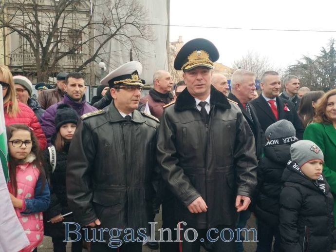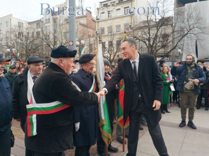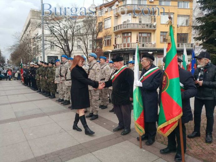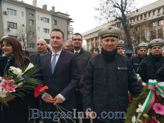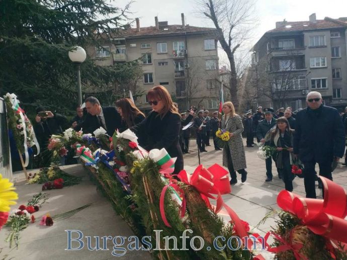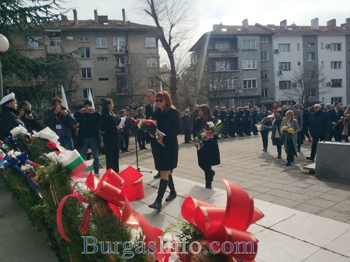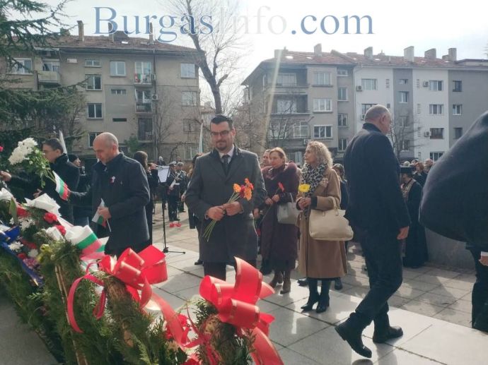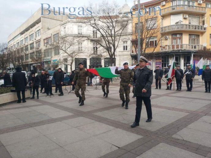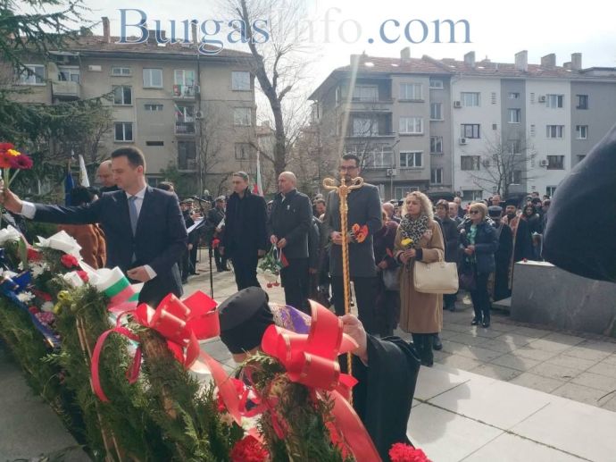 Честванията за националния празник в Бургас привлякоха родолюбиви бургазлии, които изпълниха сърцето на града. Семейства с малки деца, възрастни хора и общественици развяваха националния трибагреник на площад „Атанас Сиреков” пред сградата на Общината, където в 10 часа се състоя ритуалът по издигане на националния флаг на Република България, флаговете на Европейския съюз и Община Бургас. В 11 часа се проведе тържественият ритуал по полагане на венци и цветя и отдаване на военни почести пред Руския паметник. Бе отслужена заупокойна молитва за загиналите за Освобождението на България от османско иго.![]()