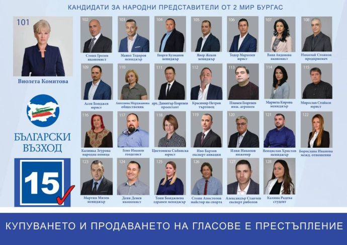 „Български възход” даде официален старт на предизборната си кампания навръх 8 март, отправяйки силни послания. Пред информационния пункт на партията до Часовника се събра цялата листа с кандидат-депутати от Бургаски регион, начело с водача Виолета Комитова. Техни симпатизанти и бургазлии можеха да се срещнат и да разговарят с тях.