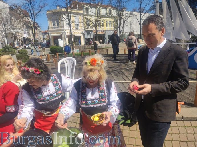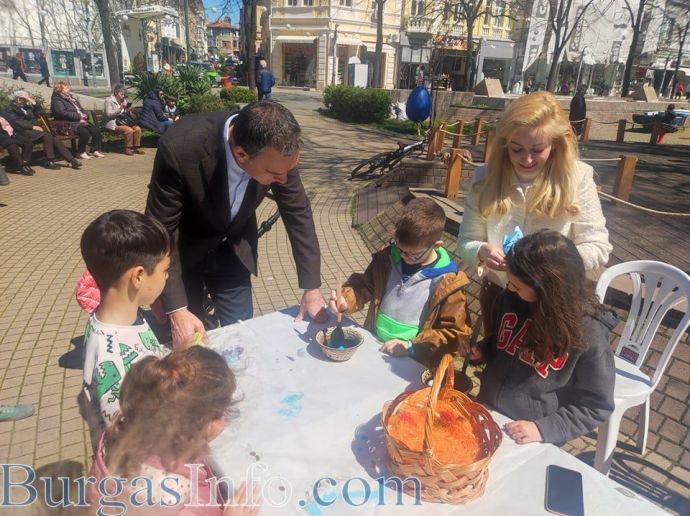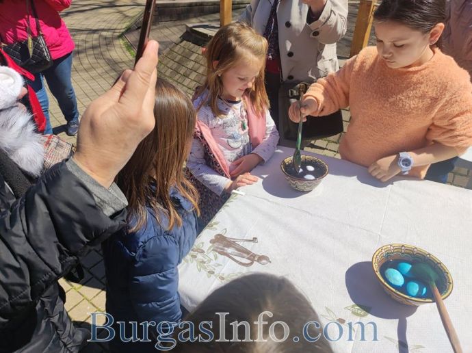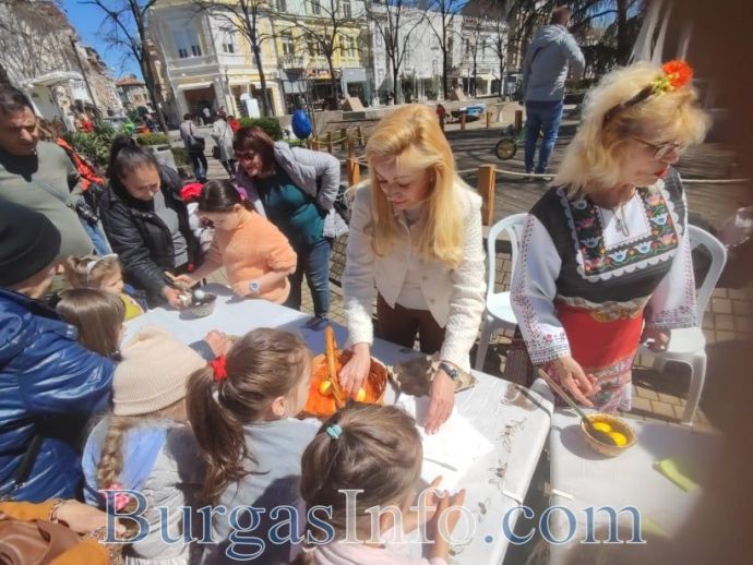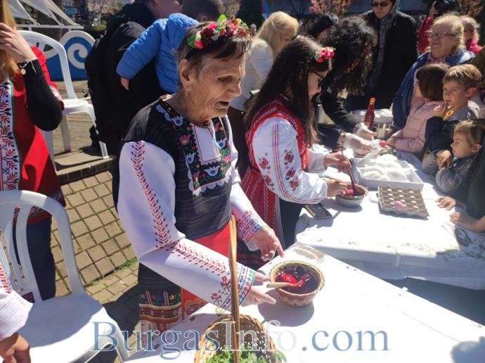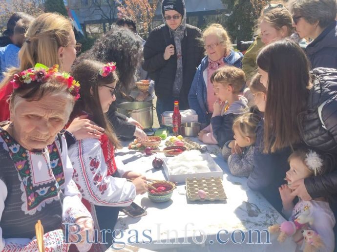 Великденско настроение завладя района край Часовника в центъра на Бургас днес, когато по традиция се боядисват яйцата за празника. Жените от Народно читалище „Васил Левски 1937“, кв. Горно Езерово и с подкрепата на Регионалния исторически музей и Община Бургас, показват как нашите баби са оцветявали яйцата.