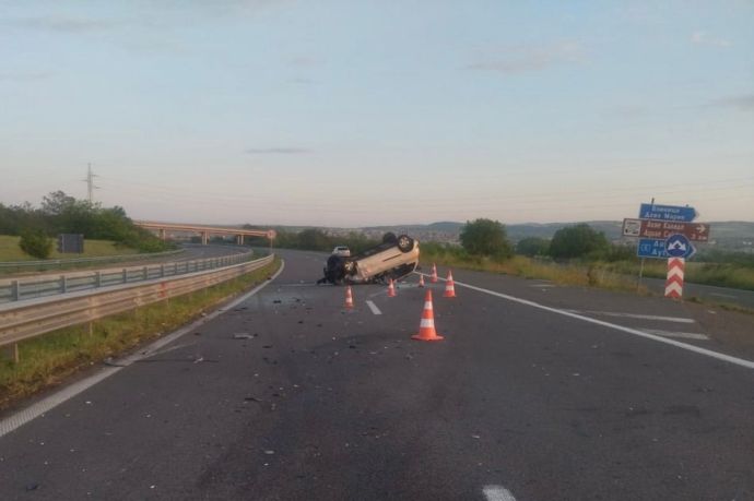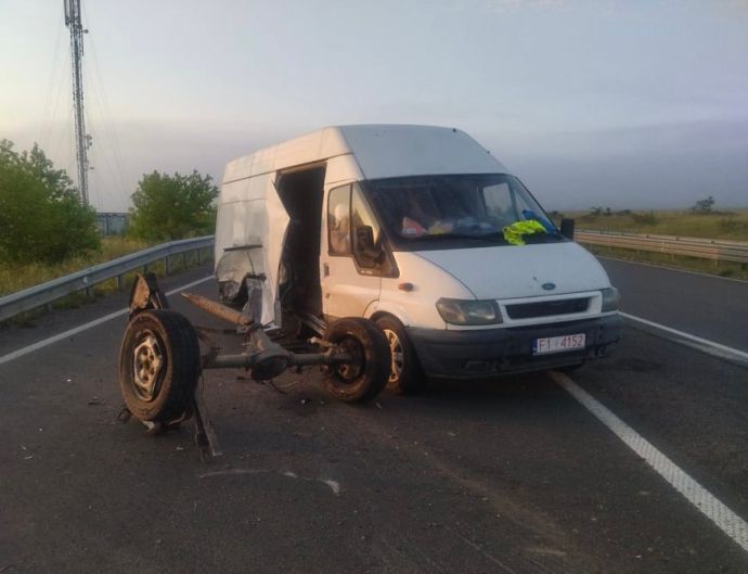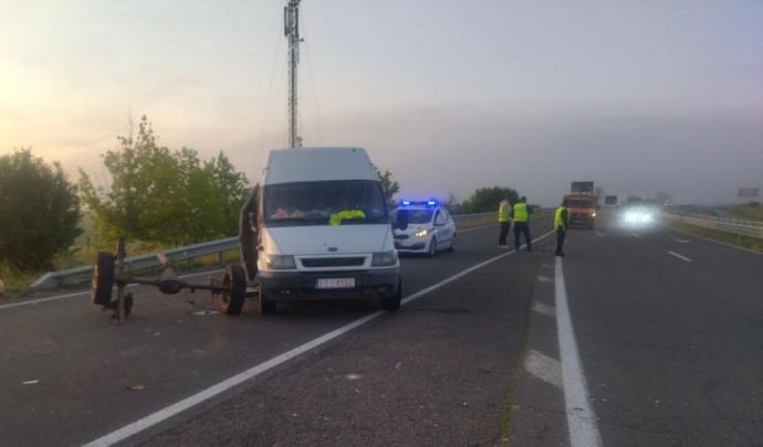 Катастрофа е станала тази сутрин на автомагистрала “Тракия”, в района на пътен възел “Ветрен” в поска София, между лек автомобил с българска регистрация и микробус с полска регистрация. От удара лекият автомобил се обърнал по таван,а микробусът е със скъсан заден мост. Пътният инцидент наложил затварянето и на двете ленти за движение. Към момента има леко пострадали хора и от двете МПС -та. Рано сутринта е въведен обходен маршрут за София - през пътен възел “Ветрен”, като към този час движението е пуснато.