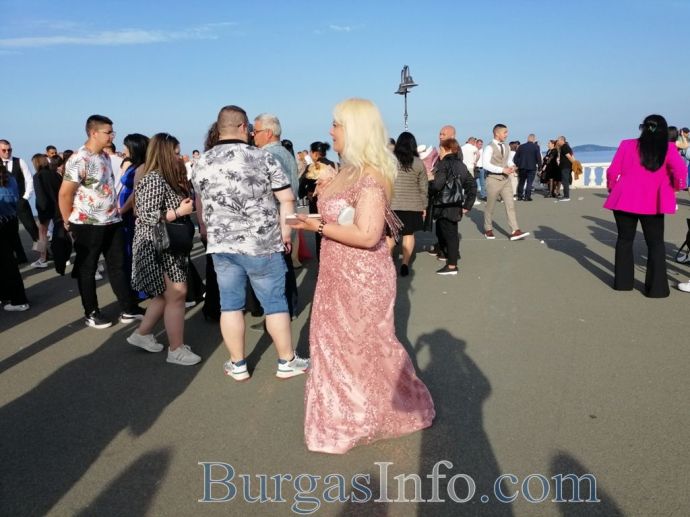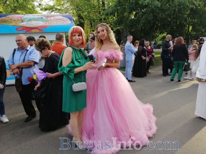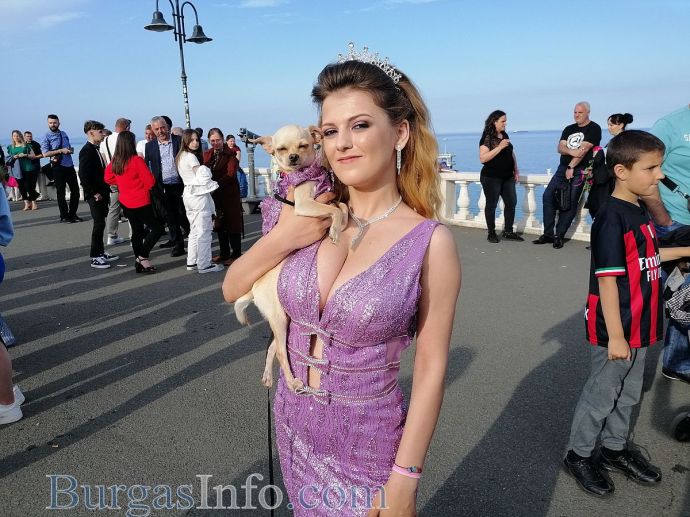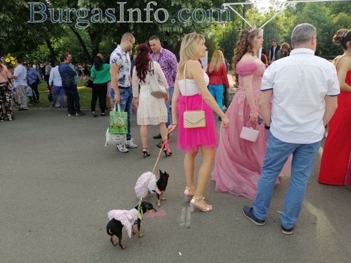 В центъра на баловете тази година се оказаха сладки домашни любимци, облечени с бляскави роклички. Много от зрелостниците на Професионалната гимназия по туризъм в Бургас държаха на най-важния ден да бъдат изпратени както от роднини и приятели така и от кученцата си. Сред тях бе и Диди Димитрова, която се появи във виолетова рокля, избрана специално от Истанбул. Диди бе със своето чихуахуа Дарси, която бе в тон с нея. ![]()