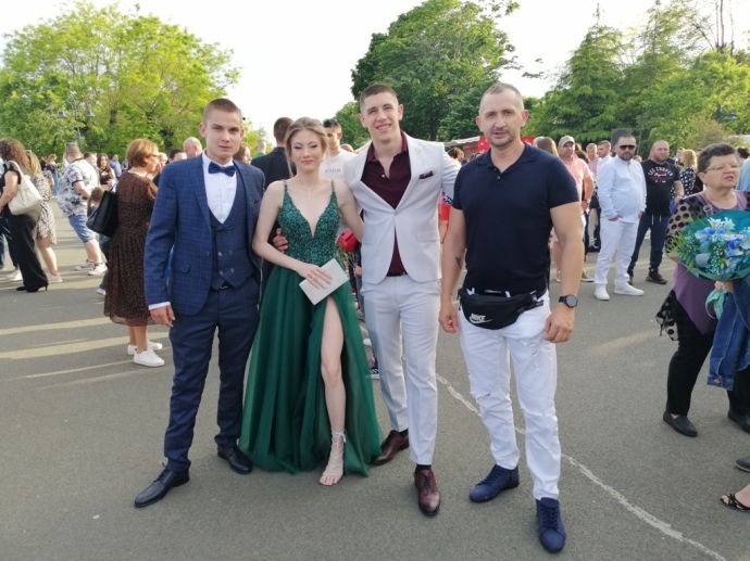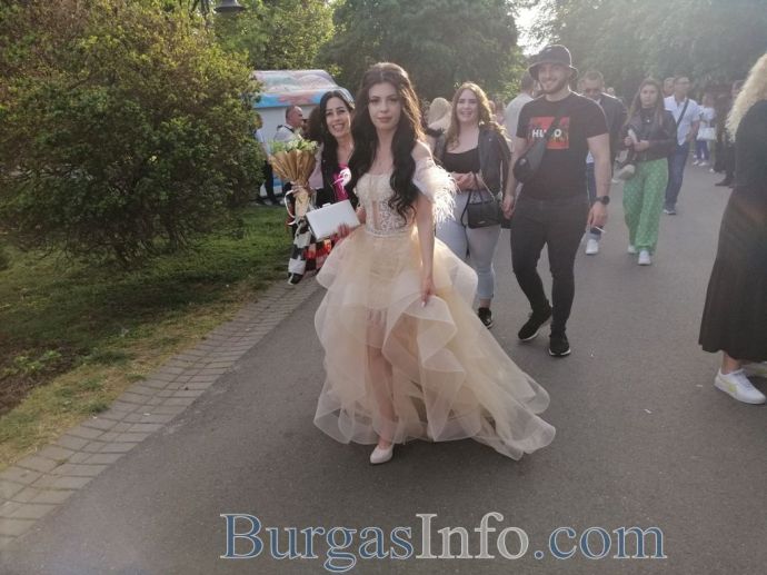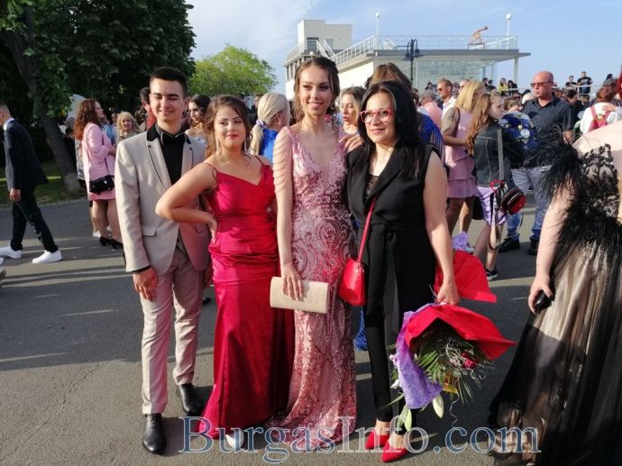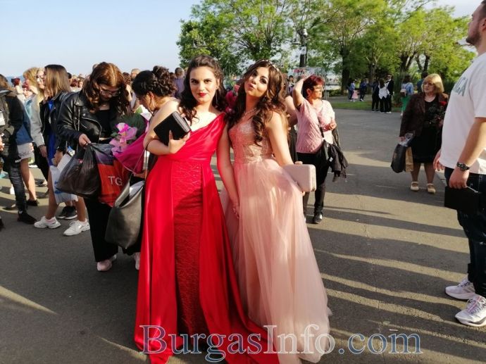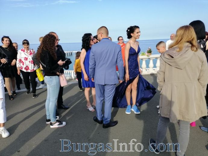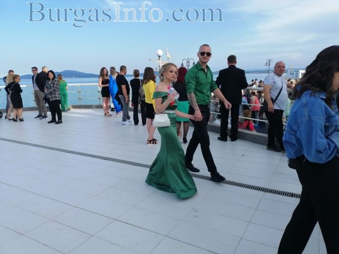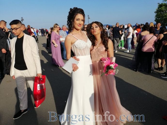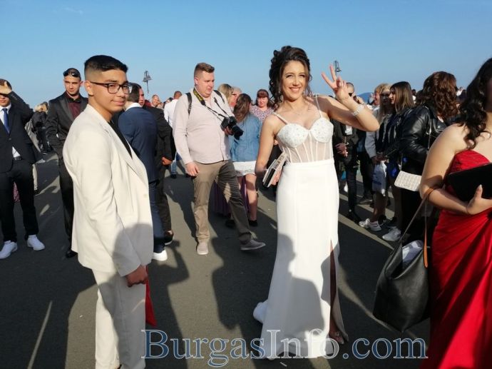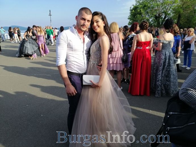 Абитуриентите от Професионалната гимназия по туризъм в Бургас показаха изключителен стил на изпращането си, което се състоя на терасата до Морското казино тази вечер. Сред завършващите бе фината Маргарита Куртева от 12 Б клас, която сподели, че винаги е мечтала именно за такъв модел рокля. Маргарита блестеше в бежово, а визията й се допълваше от красиви бижута. Тя сподели, че ще следва специалност „Медицинска козметика”. Кавалерът й също показа стил.![]()