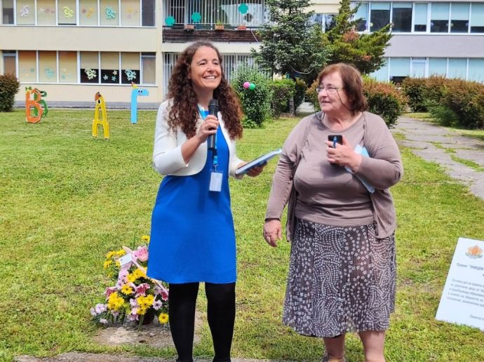 На откриването присъстваха още Андреа Налето - специалист „Образование“ в Регионален офис Европа и Централна Азия, Люба Батембергска - координатор „Образование“ към УНИЦЕФ България, Радослава Белчева – директор на ДГ „Райна Княгиня“, родители и деца.![]()