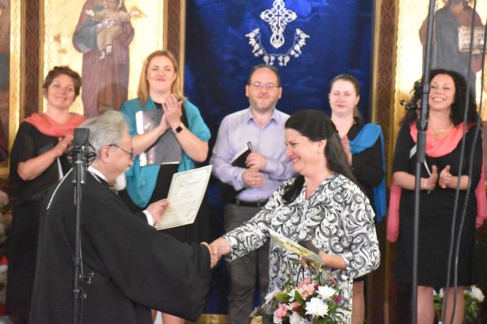 За своя значителен принос към фестивала беше удостоен юбилярят доц. Димитър Димитров, който повече от 45 години е диригент на църковния хор при Патриаршеската катедрала „Александър Невски“. Протопсалт Димитров получи почетен знак и поздравителен адрес от името на кмета на община Поморие. Отличието бе връчено от проф. д.н. Мария Нейкова – областен управител на област Бургас. Тя сподели радостта си от провеждането на този духовен празник в Поморие: Бъдете все така вдъхновени и продуктивни, защото днес повече от всякога имаме нужда от вяра и от християнски ценности. Професор Нейкова закри официално 19-то издание и заедно със Н.В.Пр. Старозагорски митрополит Киприан и Н.Пр. Агатополски епископ Иеротей, тя обяви датите за 20-то издание на православния форум, а именно 5 – 9 юни 2024 г.
