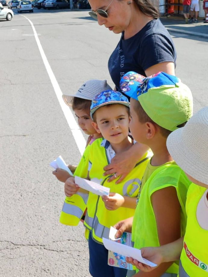 Превантивно мероприятие с участието на малчугани от детска градина “Пинокио” в бургаския к-с “Меден рудник”, посветено на Световния ден по пътна безопасност, се проведе днес със съдействието на служители от четвърто РУ. Децата спряха пътното движение в района на пещеходната пътека на ул. “Апостол войвода” и раздаваха на водачите флаери, напомняйки им до спазват правилата за движение по пътищата.