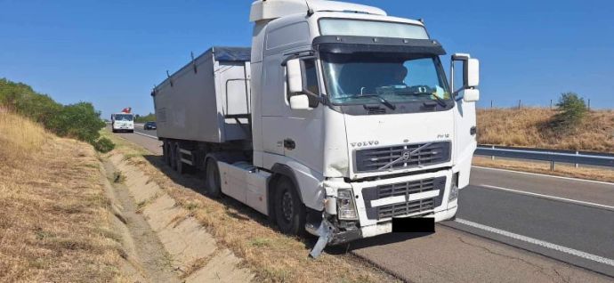 Камион, натоварен с пшеница, блъсна лека кола на АМ „Тракия“, ранена е жена, която е откарана в болница.