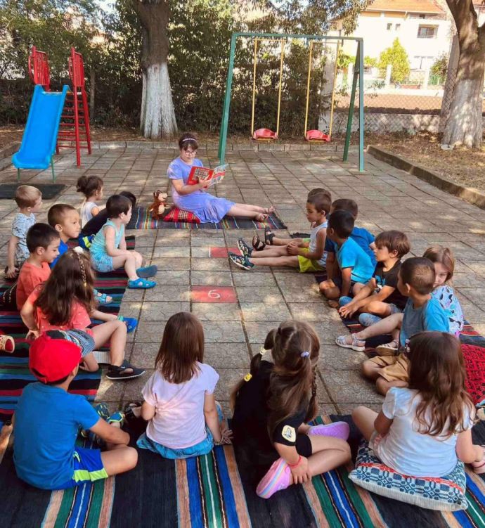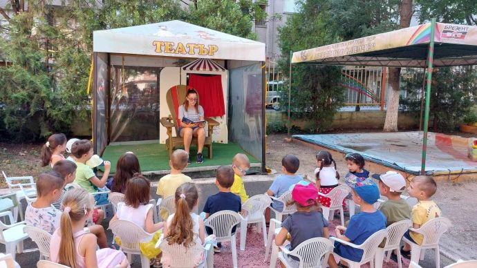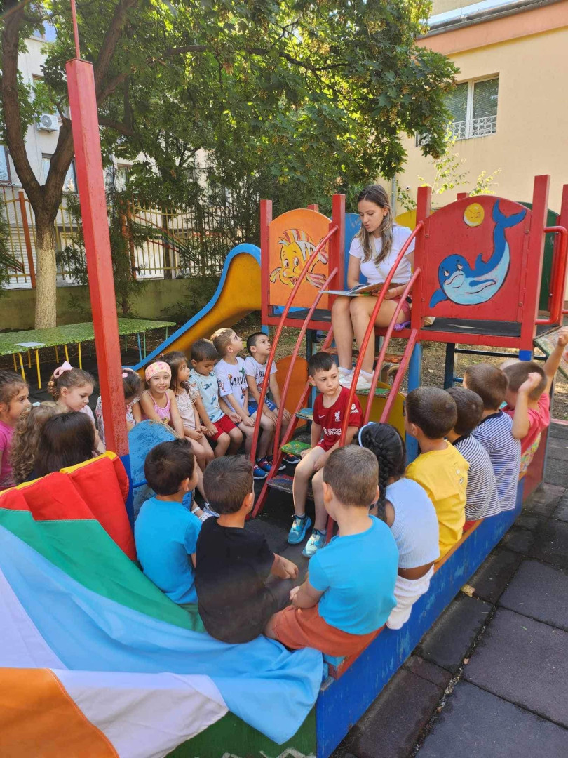 Въпреки че са в лятна ваканция, бургаските ученици намериха време и желание да влязат в детските градини при най-малките и да им прочетат приказка. Браво!“, коментира кметът Димитър Николов.