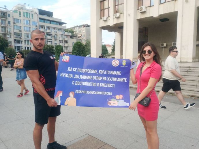 В подкрепа на момичето бяха и организаторите и лицата на най-големия младежки фестивал Teen Boom Fest. Арти и съпругата му Кристина категорично казаха не на агресията над жени. Моторът на фестивала Михаела Бошева също държеше плакат с това послание.