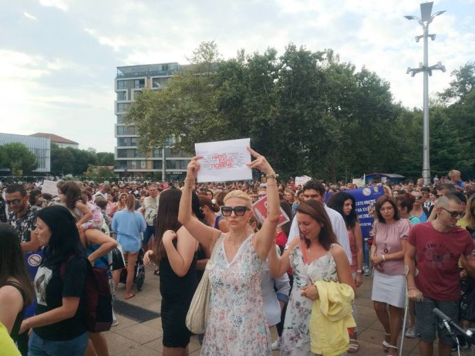 „Тук съм като жена, работеща и даваща на това общество и деца, и семейство. Аз мисля, че ние жените имаме право да кажем не. И когато кажем не е не. Мъжете трябва да се научат да ни слушат”, каза общинският съветник Ева Михалева, която също бе на протеста.