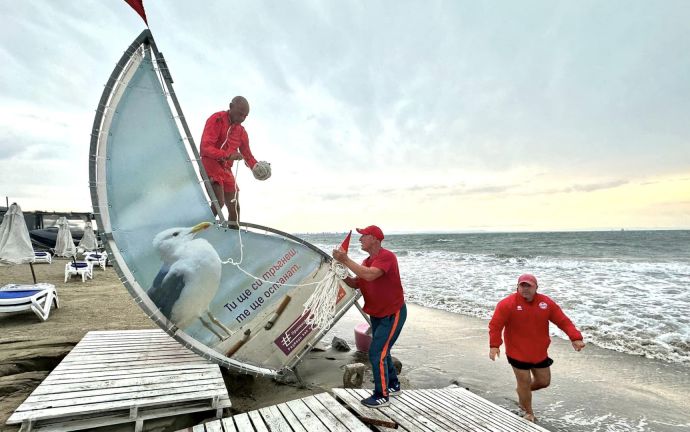 „До всички тези “абе ти ше ми кажеш на мене или глей си работата”! Днес вълната е над 2 метра, с изключителен интензитет и сила и събаря и здрави и обучени мъже! На места са издълбани ями във водата до 1 метър, но не се забелязват докато не стъпиш в тях! Флагът е червен и това ЗАБРАНЯВА влизането в морето!”, написа в личната си фейсбук страница концесионерът на плажа в Крайморие Николай Димитров. На пясъчната ивица има подкопани спасителни постове, които са досъборени от силния вятър.