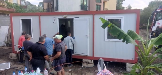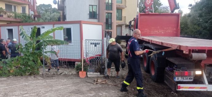 Служителите от РДПБЗН – Бургас продължават с дейностите по отводняване на големия микроязовир към с. Лозенец, поради належащ спешен ремонт на компрометираните язовирни стени. Друг екип е ангажиран с доставянето от Пловдив на фургон за жилищни нужди на бедстващо семейство, собственост на ГДПБЗН. Той вече е монтиран и може да обитава. Два екипа огнеборци осъществяват отводнителни действия в к-г „Оазис“.![]()