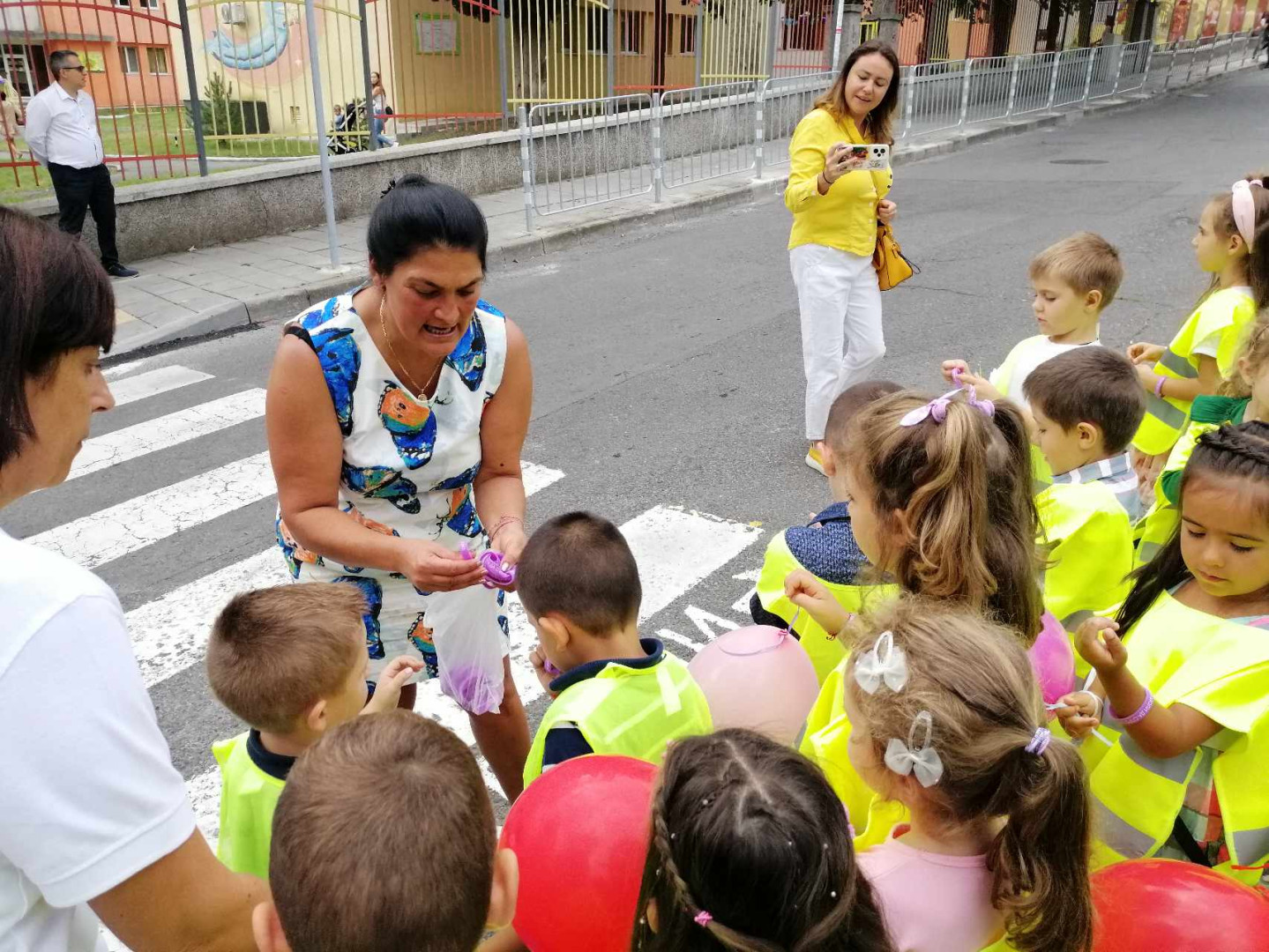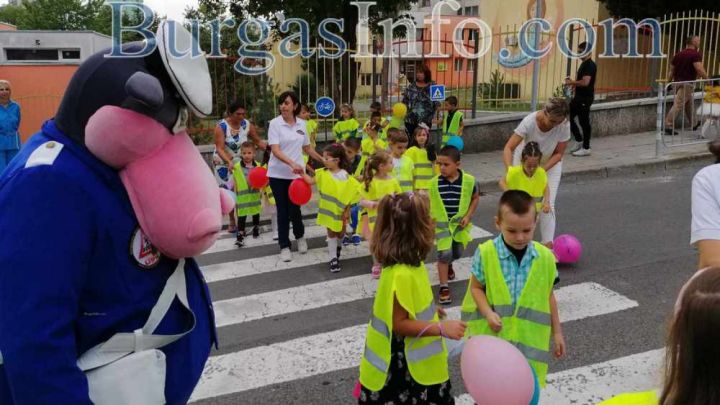 Пешеходната пътека пред Детска градина „Звездица-Зорница“ в Бургас грейна днес на първия учебен ден. Тя бе боядисана, като посланието е да бъде безопасна новата учебна година. Инициативата е на „Безопасни улици от Валя“, като в боядисването участва и директорът на ОДМВР-Бургас старши комисар Емил Павлов. Малките възпитаници на детската градина започнаха с много усмивки учебната година, като сред тях беше и инспектор Хитами. На инициативата присъства и кметът на Бургас Димитър Николов.
