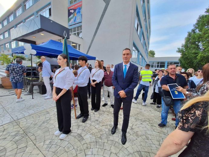Празникът на училището споделиха кметът на Бургас Димитър Николов, председателят на Общинския съвет Севдалина Турманова, началникът на РУО-Бургас Петя Претрова и председателят на комисията по образование към ОбС- Бургас Виолета Илиева. Специалнии гости на незабравимото откриване бяха любимците на младите хора Криси и Арти, както и група "Deja vu".