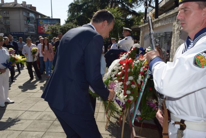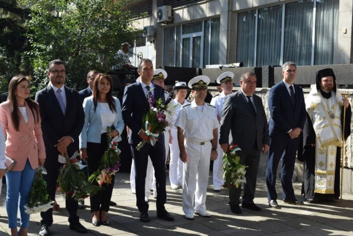 В присъствието на много официални лица и граждани бяха издигнати флаговете на Република България, Община Бургас и Европейския съюз. Свещеници от бургаското православно духовенство отслужиха празничен молебен за благоденствието на родината.